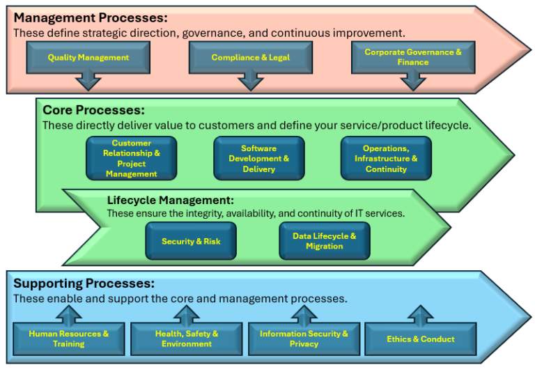04 role-based Process Clusters that cover Management, Core, Lifecycle and Supporting Processes